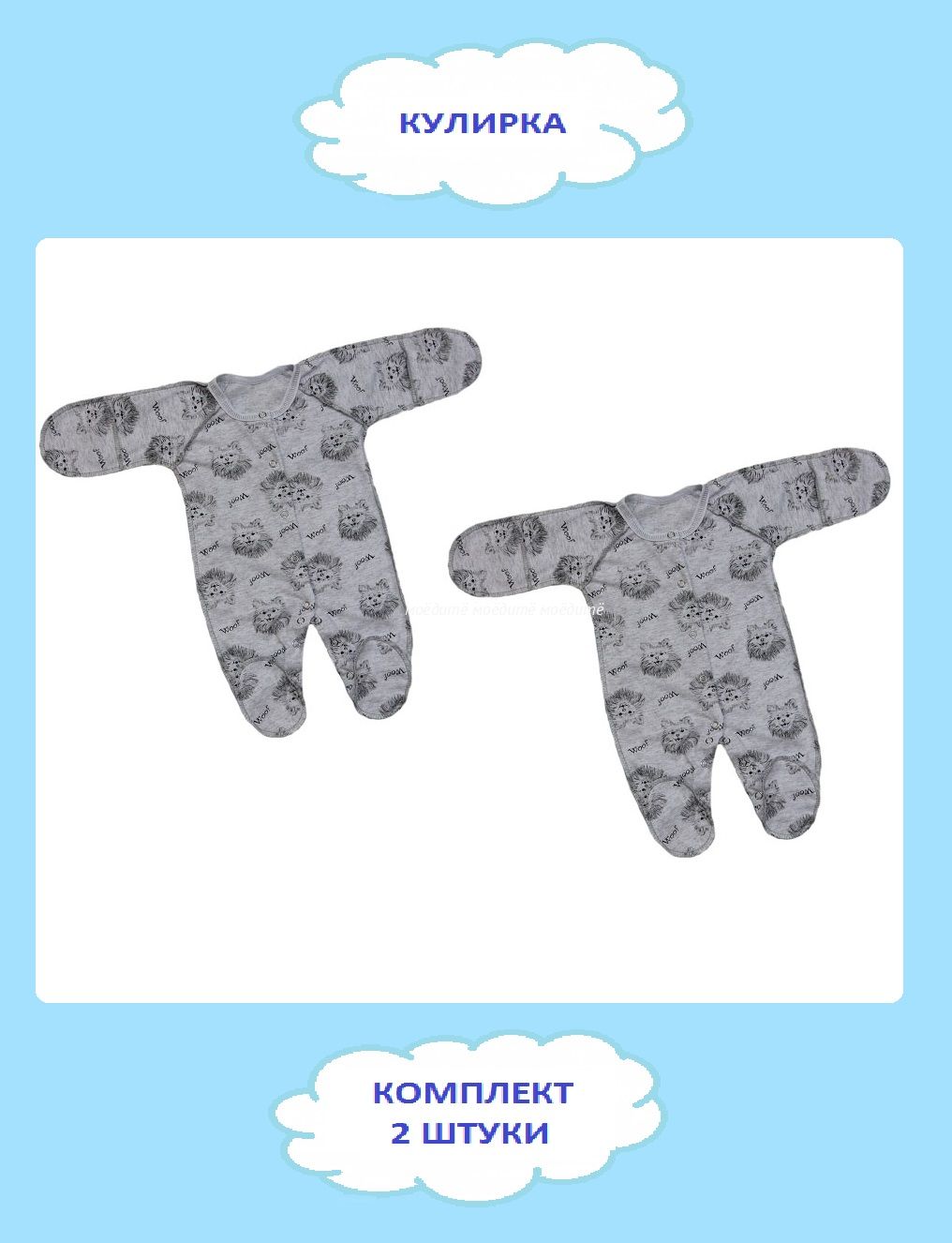 "МоёДитё" комбинезон со швами наружу "Гардения" КК007 "Собачки" серый в Одинцово